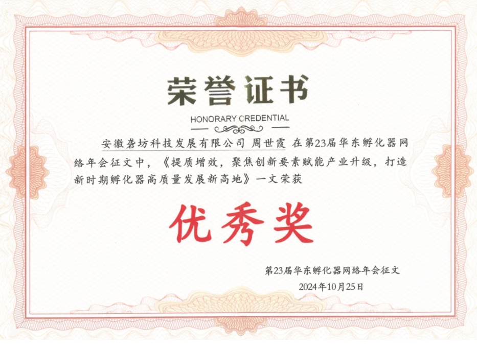 這是園區(qū)第二次獲此殊榮,作為安徽省唯一獲得優(yōu)秀的孵化器,這是協(xié)會對園區(qū)孵化工作的肯定,下一步,園區(qū)將繼續(xù)優(yōu)化孵化服務體系,深入聚焦創(chuàng)新資源,培育新質生產(chǎn)力,為推動區(qū)域創(chuàng)新生態(tài)和科技企業(yè)高質量發(fā)展貢獻力量。